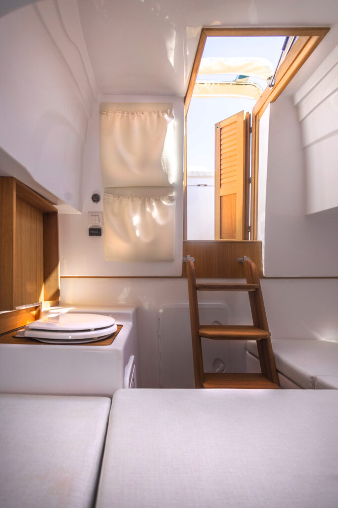 From the sunbathing area to the cabin below deck, every detail is designed for those who love the sea without compromise, even in the most compact dimensions.