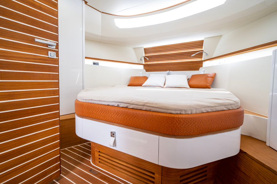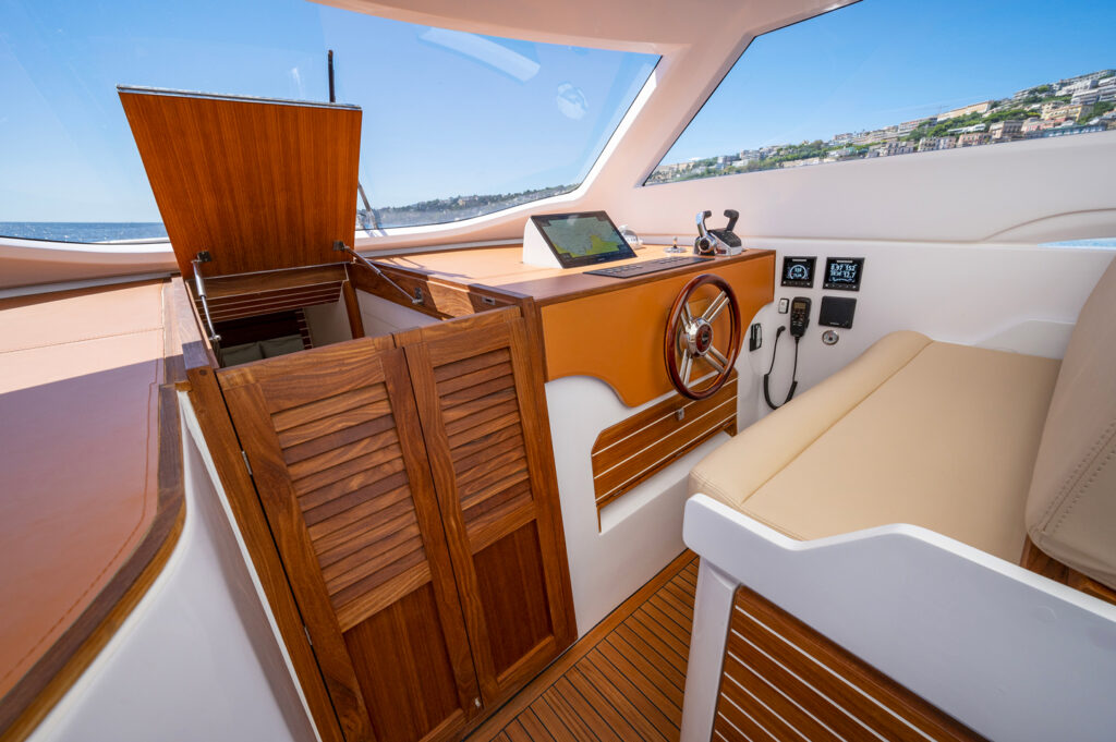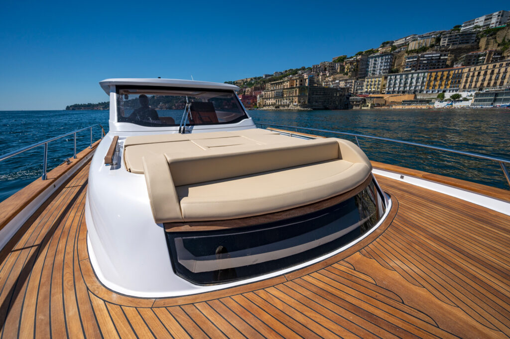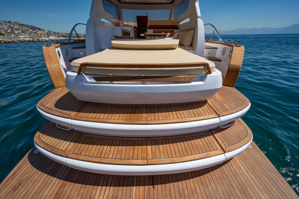 Pensato per chi desidera unire le comodità contemporanee all’eleganza della tradizione, è motorizzato con due Yanmar da 370 cavalli ciascuno per una velocità massima di 30 nodi.